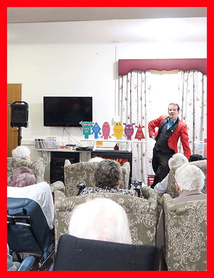 Max has custom designed his show to cater for Aged care by involving the residents as helpers without needing them to come to the front of the audience.